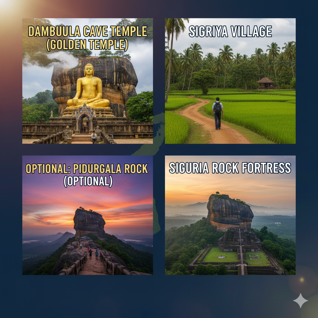 Pidurangala Rock (Optional) β A short hike for stunning sunset views of Sigiriya Rock.